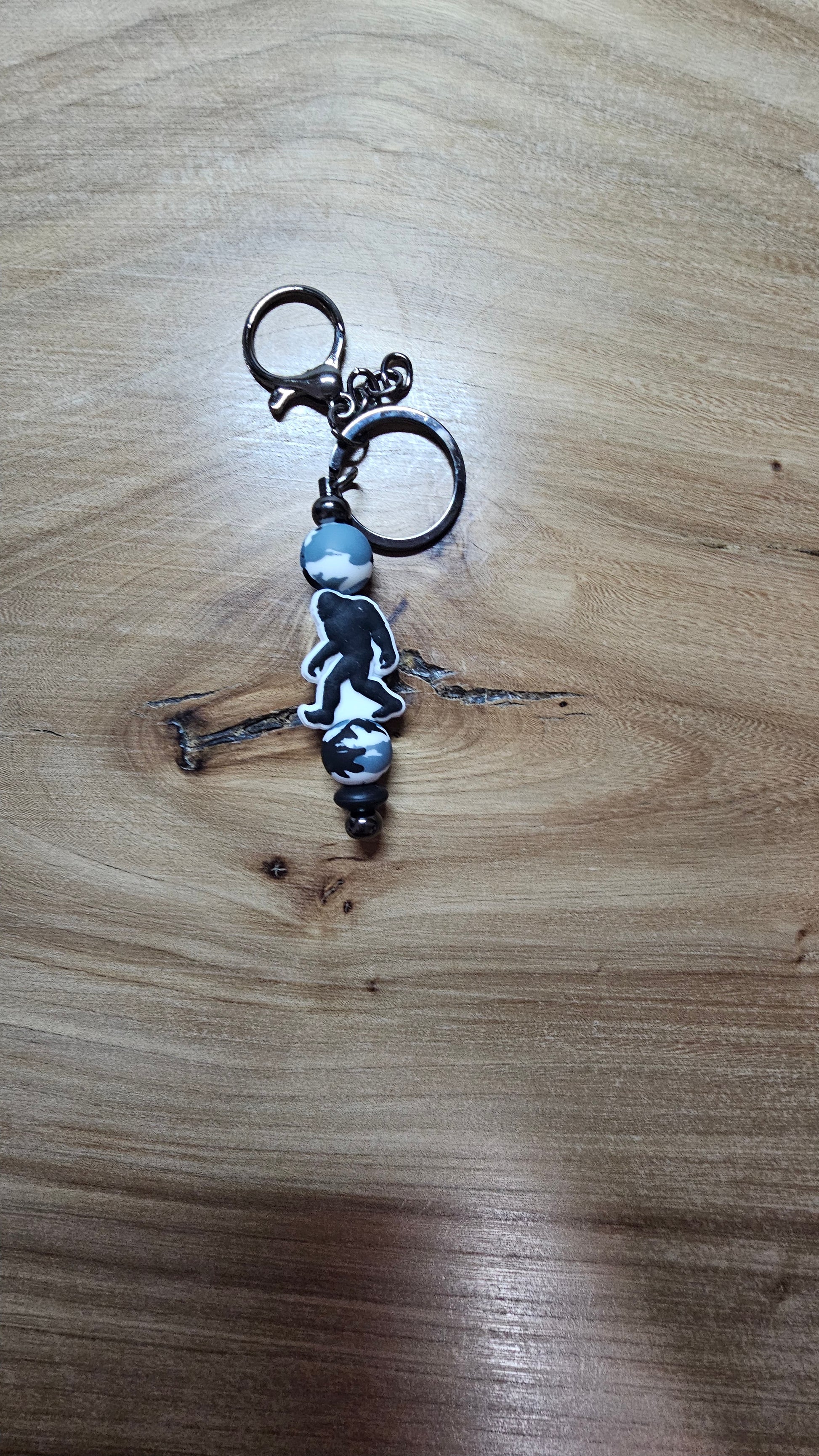 "Unleash the power of the elusive Bigfoot with this camo keychain! Featuring black, gray, and white camo accent beads and a Bigfoot bead in stride, you'll never lose your keys again (unless it's in the forest). Perfect for any quirky, fun-loving outdoor enthusiast. Limited stock, so get yours now!"