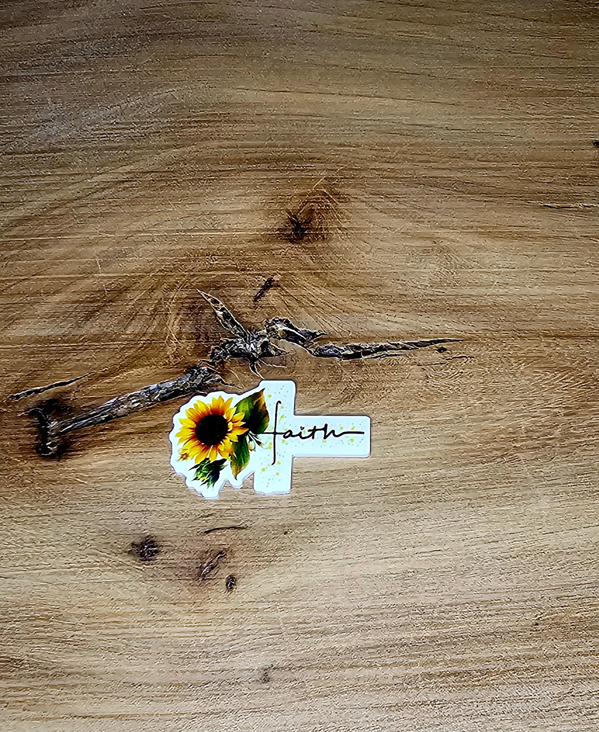 Faith Flatback adds a stylish touch to your standard badge reel with a unique sideways cross design and a charming sunflower accent. Easily attach it to any badge reel for a personalized look. Elevate your professional attire with this eye-catching accessory.