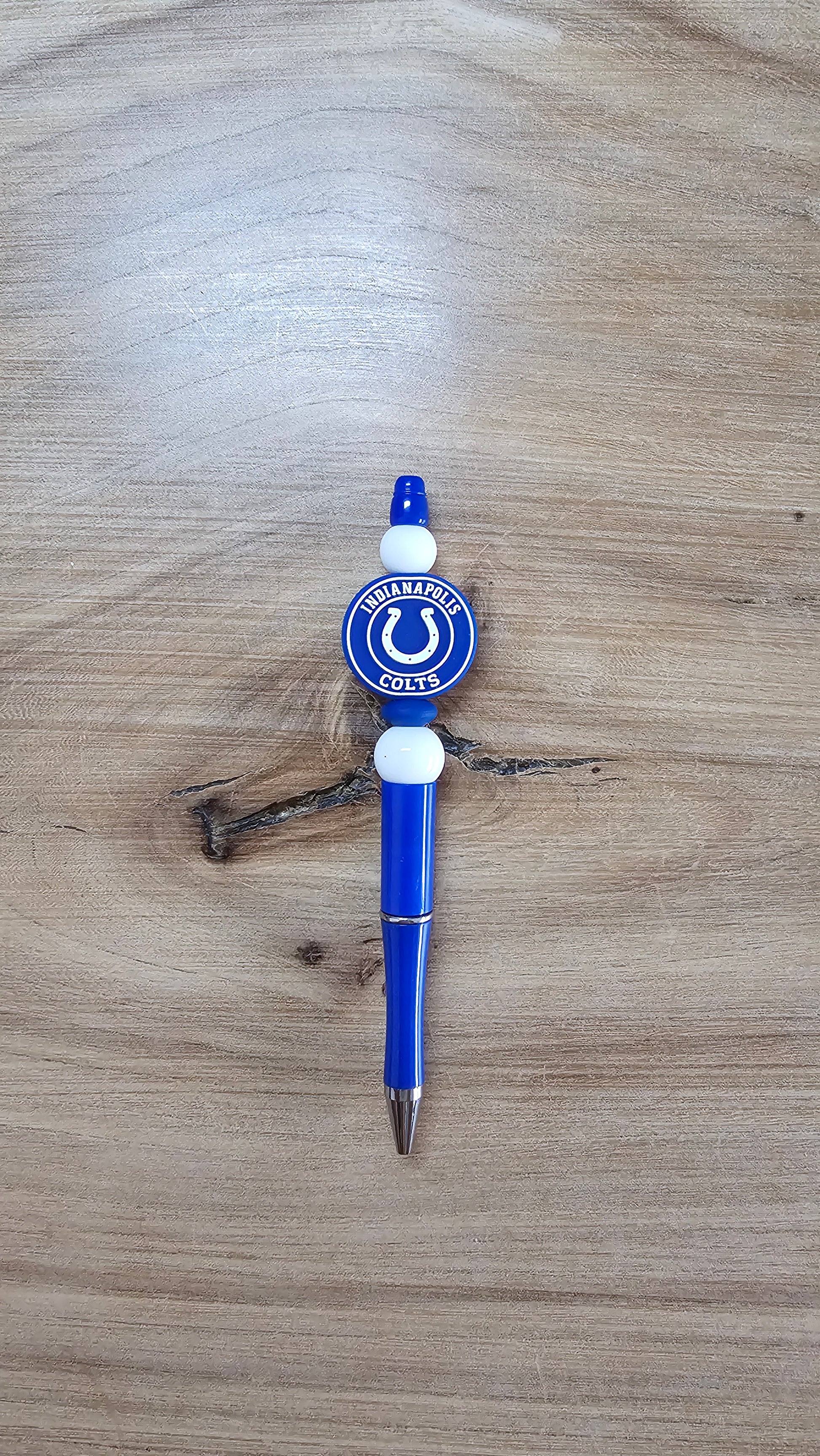 Show off your team spirit with the Indianapolis Colts Cobalt Blue Pen! This quirky blue pen is perfect for writing notes, making lists, or filling out game day brackets. The black ink ensures your writing is bold and legible, while the blue and white accent beads add a fun touch. (Makes a great gift for Colts fans!)