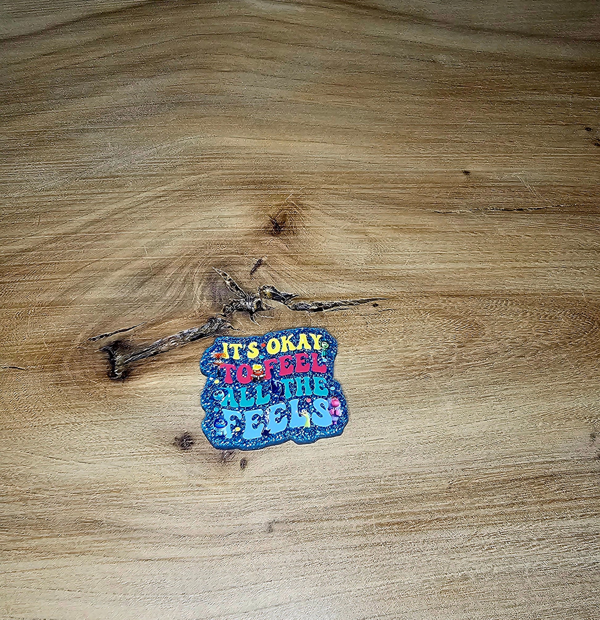 This versatile It's Okay To Feel All the Feels Flatback is perfect for anyone looking to add a pop of color to their badge reel. With blue glitter and accent colors in yellow, pink, and teal, this flatback is both stylish and functional. Easily attach it to any badge reel for a touch of personality.