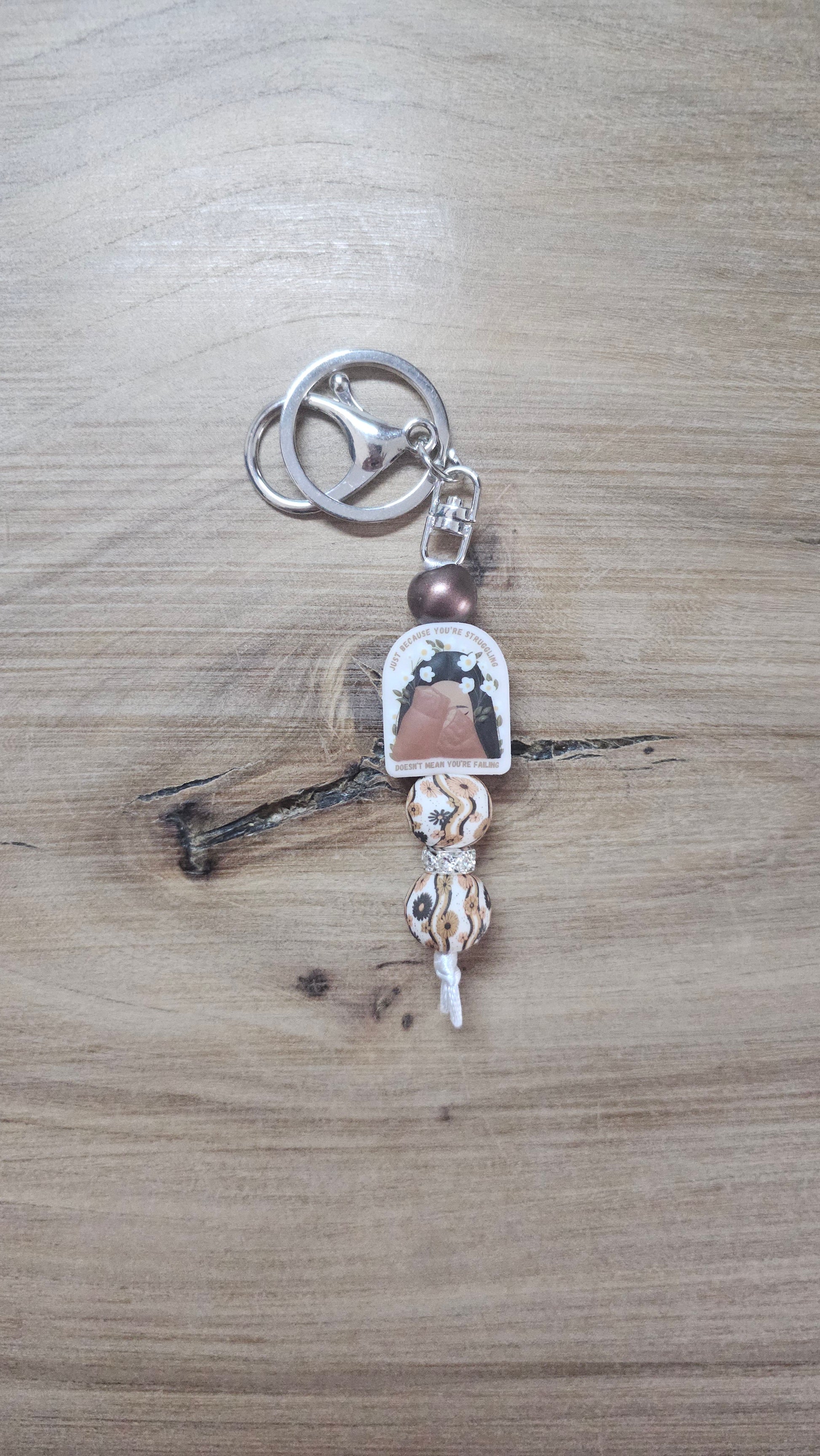 Upgrade your keychain game with our "Just Because You're Struggling, Doesn't Mean You Are Failing" keychain. Featuring silver accents and daisy beads with groovy accents, this chic accessory reminds you to stay resilient and positive. Made with quality materials, it's the perfect gift for anyone going through a tough time.