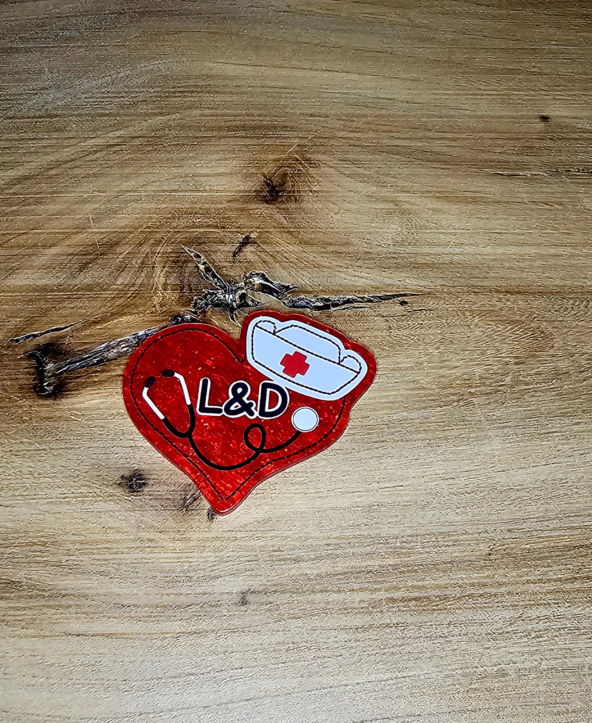 Add a touch of whimsy (and some bling) to your badge reel with this L&D Nurse Flatback. Featuring a sparkly red heart, nurse hat, and stethoscope, attach it to any badge reel for a playful addition to your work uniform. Perfect for nurses who love a little flair!