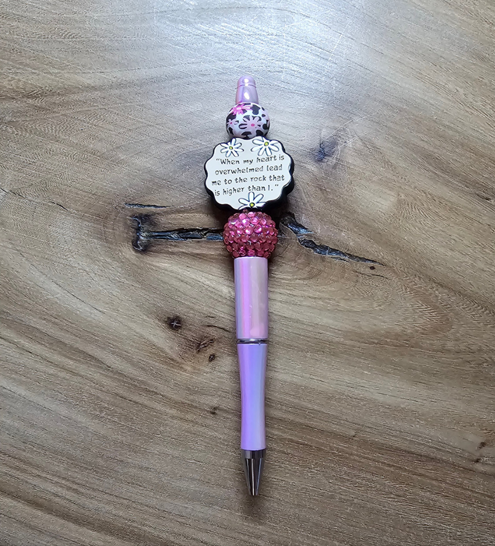 This pen features the powerful biblical quote, "When my heart is overwhelmed, lead me to the rock that is higher than I", providing comfort and guidance in times of struggle. Let this pen lead you to a place of peace and strength.