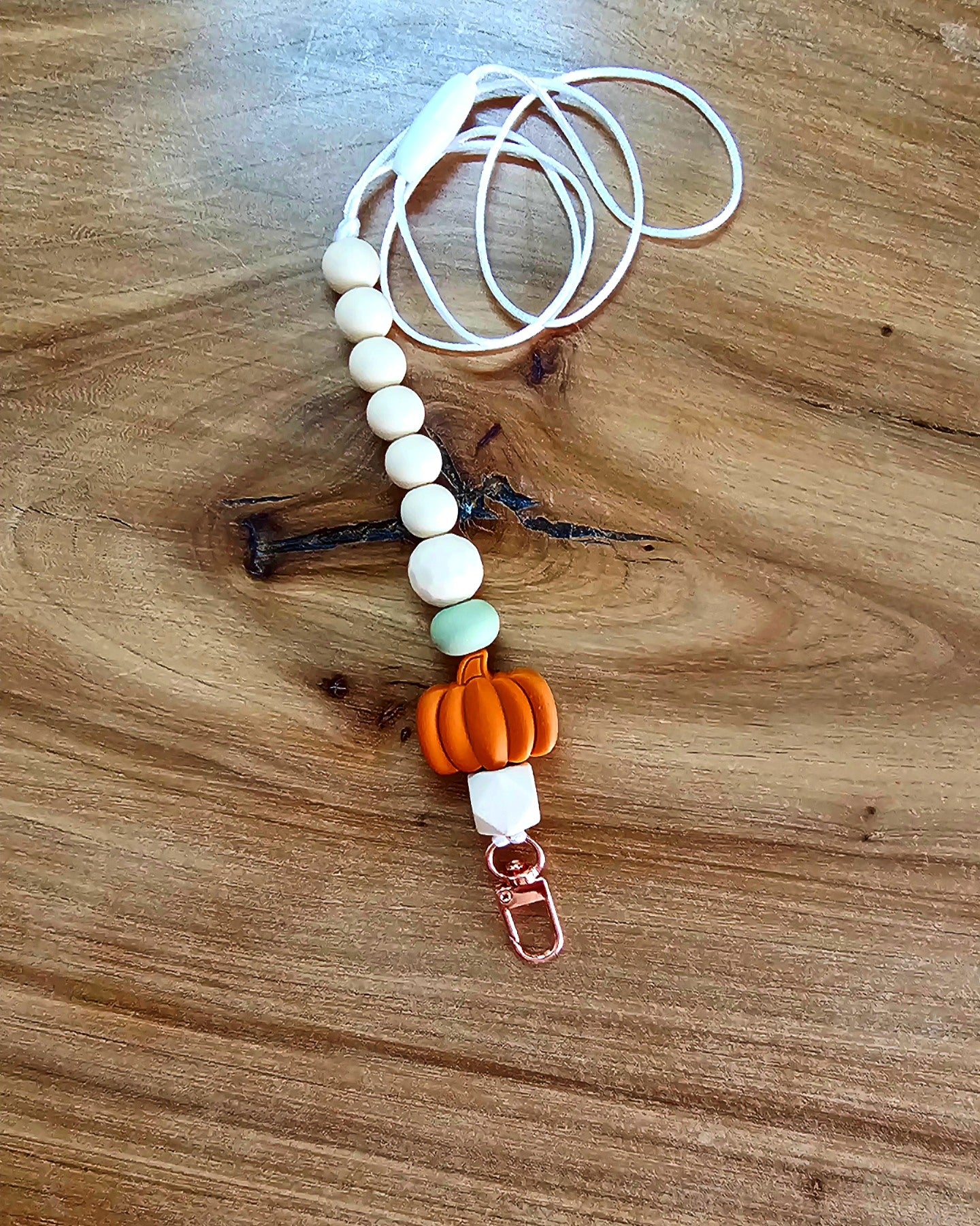 Fall in love with cozy, autumn-inspired charm! This lanyard blends pumpkin spice hues with effortless seasonal style.
