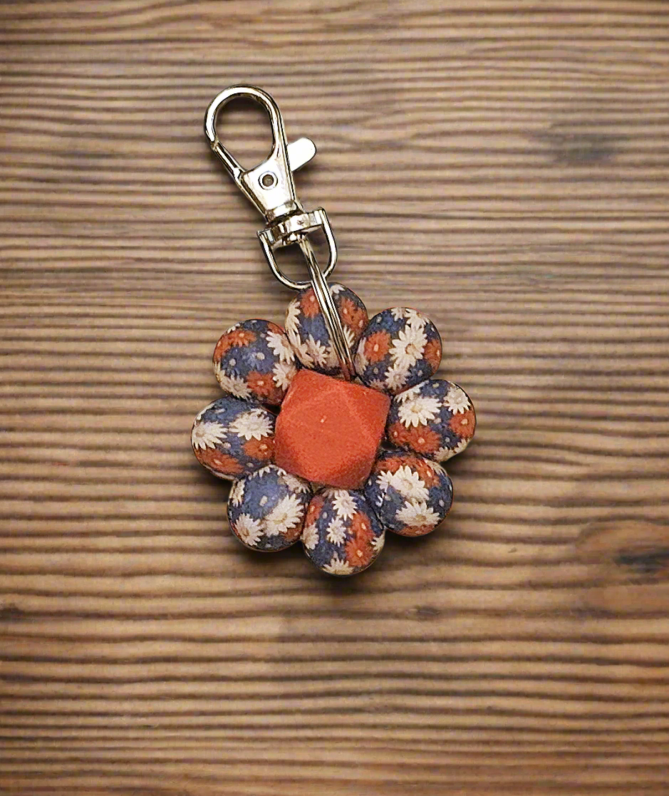 Red White and Blue Flower Keychain