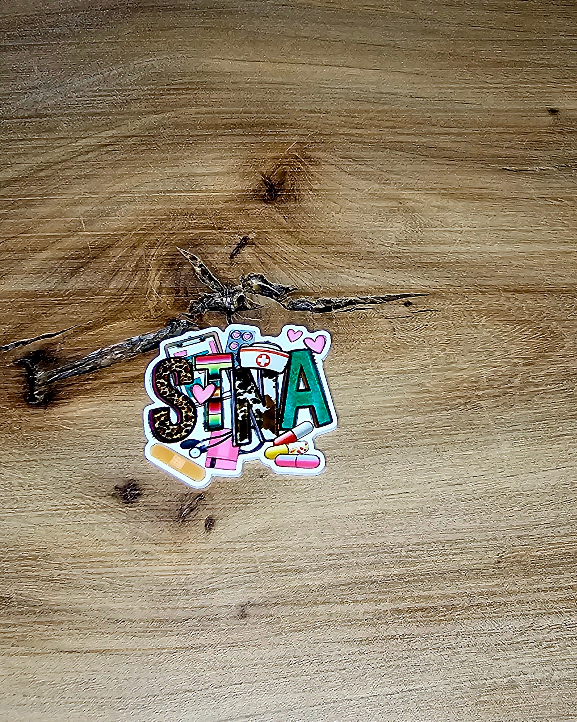 The STNA Flatback adds a touch of wild whimsy to your badge reel with cowhide, leopard print, stethoscope, and nurse hat accents. Make a statement while keeping your badge secure!