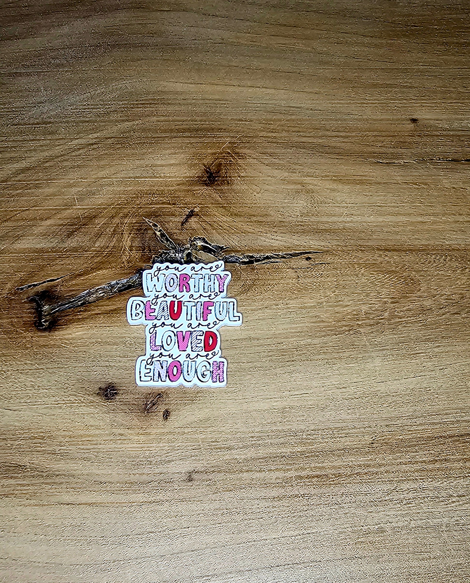 Empower yourself with You Are Worth Flatback. This badge reel attachment serves as a daily reminder of your worth, beauty, love, and enough-ness. Simple yet powerful, it easily attaches to any badge reel for a stylish reminder of your worth.